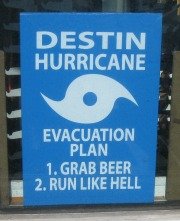While in Destin, Fla I ask a store clerk what did they do in the event of a hurricane and she pointed to this sign. That would be my plan.