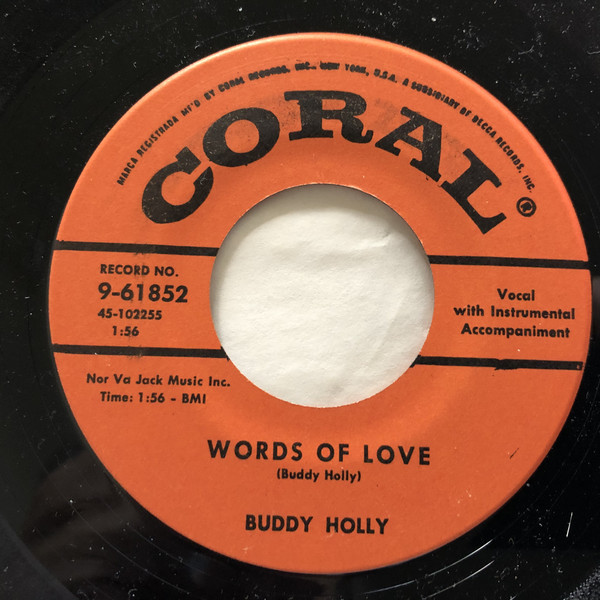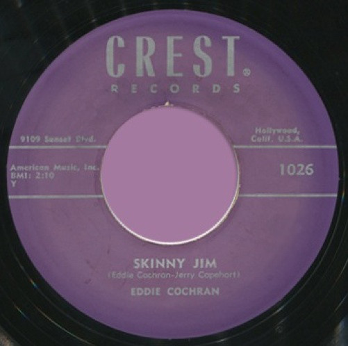 Buddy Holly and Eddie Cochran are among the giants in the history of Rock N Roll. Both would die young, well before their time; Holly in a plane crash and Cochran in a car accident. Any and all of their records are collectible. In 1956, Crest Records released “Skinny Jim” by Eddie Cochran. In 1957, Coral Records issued the single “Words of Love” by Buddy Holly. Each one can get you $800.00 today. Source; money music.