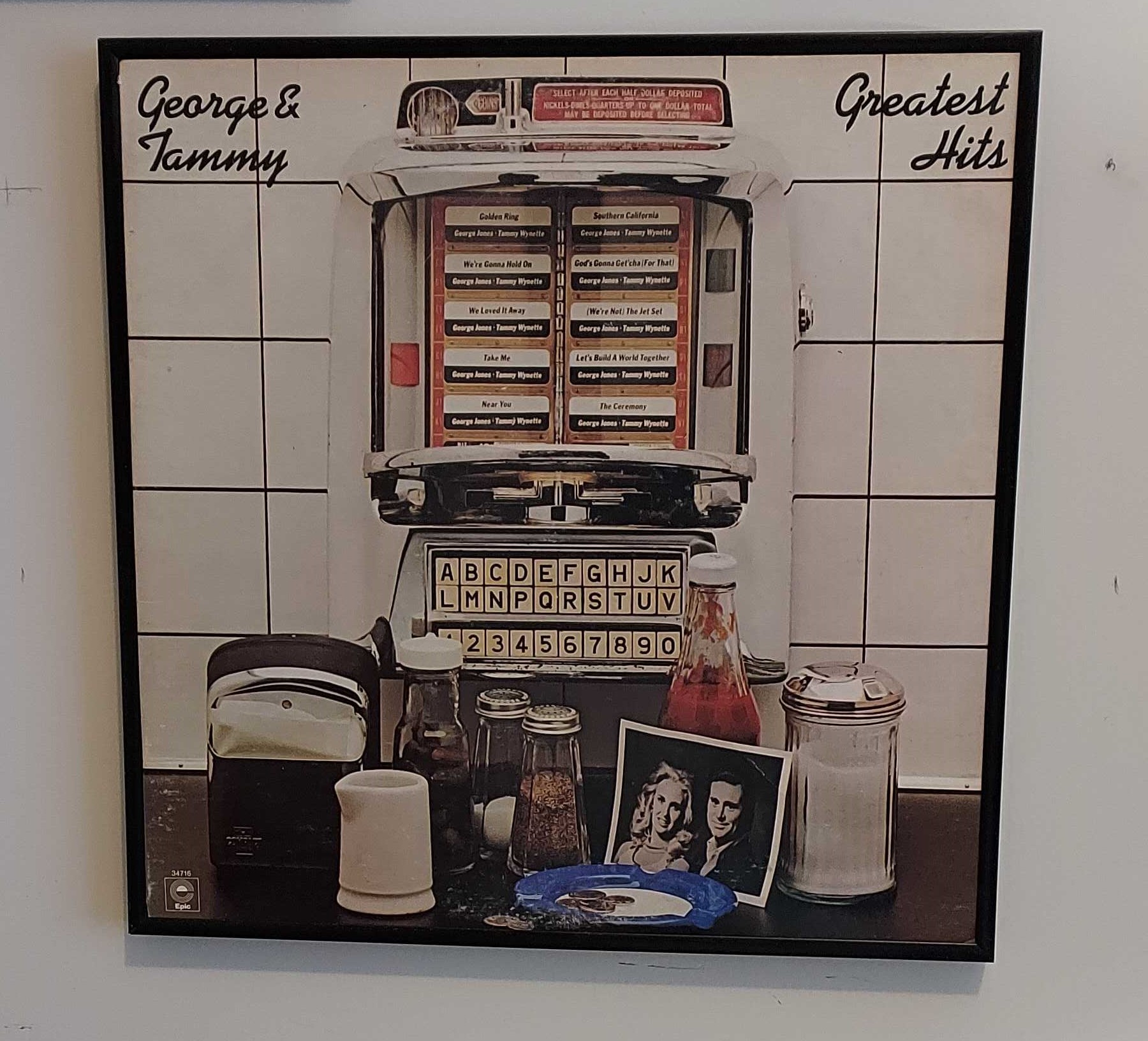 Here are two of my framed album cover art displayed with a jukebox theme.