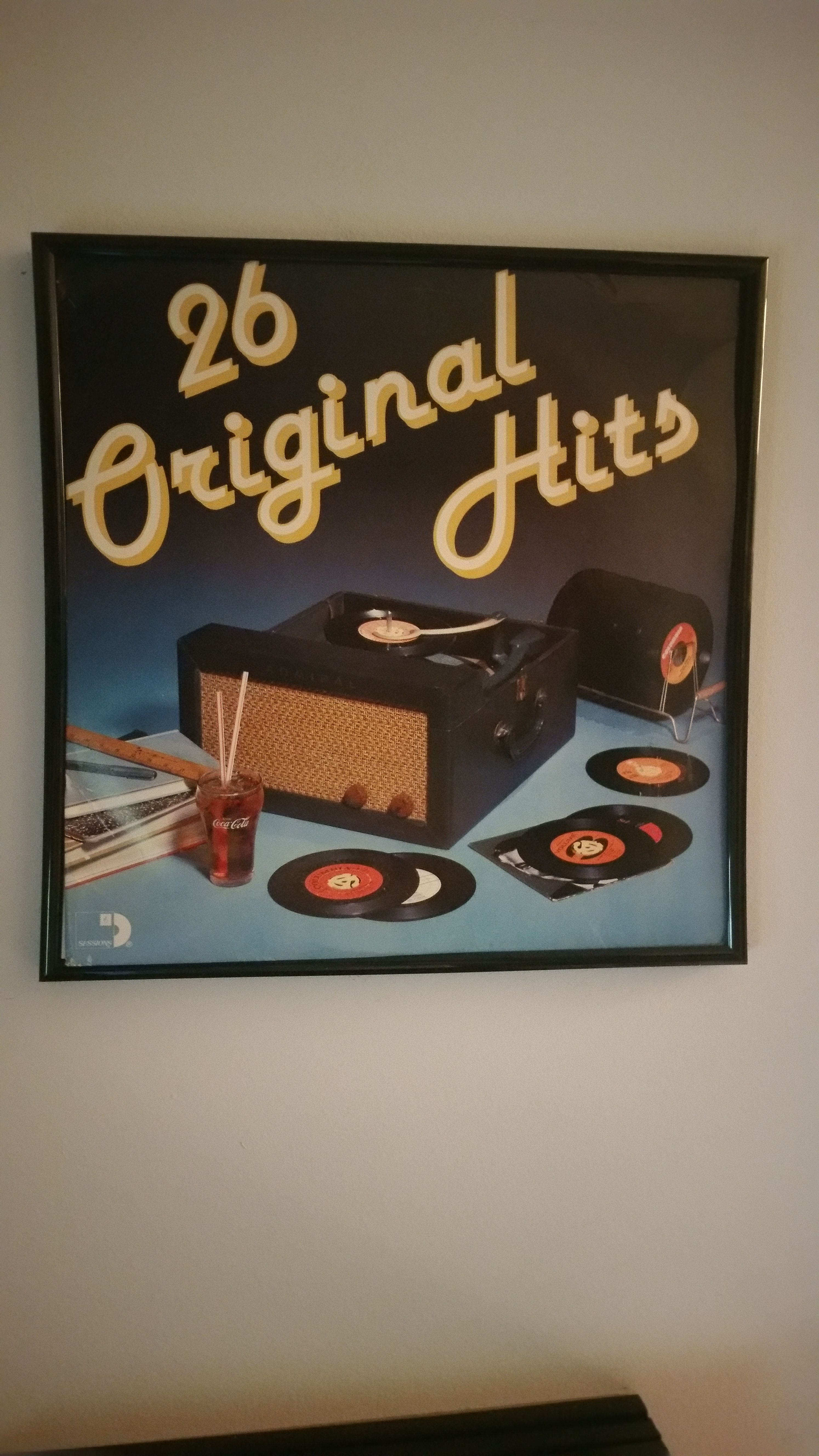 A 50s record player, a few scattered records, school books and a Coca-Cola, blend in well with this simple but effective, Framed Album Cover Art of the Month.