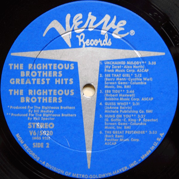 The Righteous Brothers Greatest Hits is an original album I have maintained in my collection for fifty years.