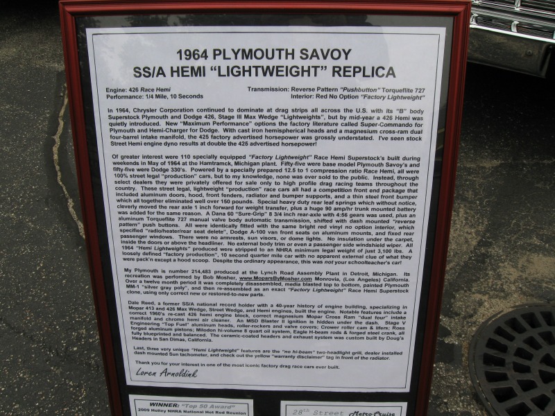 Even today, over a half century later, it is still hard to believe that this street legal 1964 Plymouth Savoy could rip down the quarter mile in 10 seconds. The SS/A on the rear side window was a class designated Super Stock Automatic.