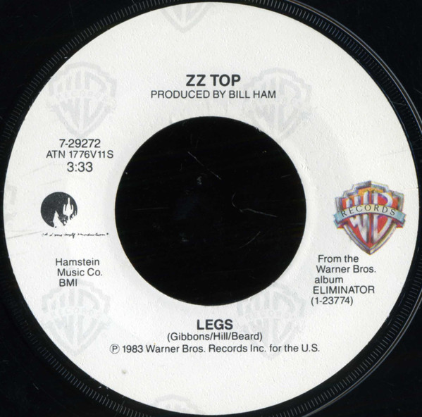 This 45rpm record of "Legs," is a song performed by the band ZZ Top from their 1983 album Eliminator and released as a single in the US in 1984. "Legs" reached number eight on the Billboard Hot 100 in the United States.