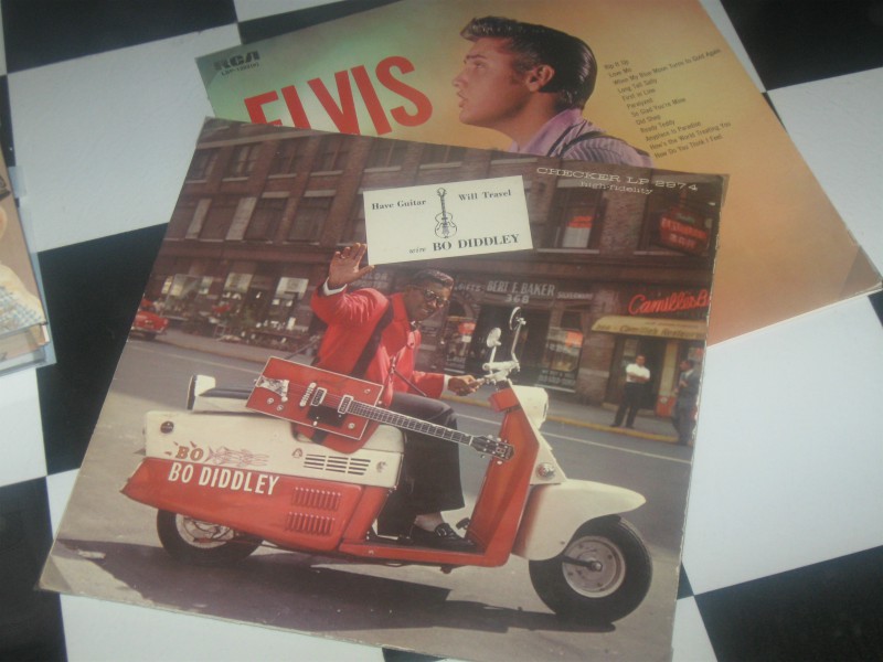 Each month I add a photo for the "Album Cover of the Month" and use an album from my collection. However, this unique album is one I do not have and believe everyone would enjoy seeing. The Bo Diddley scooter is a '59-60 Cushman Road King. Very popular at the time.